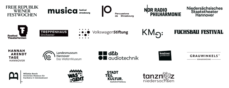 The KunstFestSpiele Herrenhausen could not take place without the partners at its side. We would especially like to thank our main sponsors for their long-standing support: Niedersächsische Sparkassenstiftung, Sparkasse Hannover, VGH, Nord/LB Kulturstiftung, Stiftung Niedersachsen and VHV Stiftung.